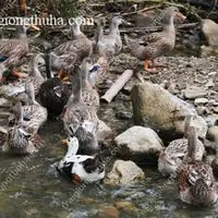 Tập cho ăn mồi từ ít tới nhiều, không nên cho vịt ăn quá nhiều một lúc vì chúng dễ bị bội thực chết. + Đồng thời phải tập cho vịt xuống nước tắm. Vịt con từ 11 - 16 ngày tuổi thì cho vịt ăn thức ăn bằng gạo lức hay ngô xay không cần nấu chín mà chỉ cần ngâm vào nước cho chương mềm. Cho đến khi vịt được trên 15 ngày tuổi thì bắt đầu cho chúng ăn lúa nấu chín. Hàng ngày chỉ cho vịt ăn 2 bữa và kết hợp với chăn thả ngoài đồng để vịt kiếm thêm thức ăn. Trong giai đoạn này phải bổ sung chất đạm như tôm, cua, cá khô băm nhỏ... vào thức ăn cho vịt